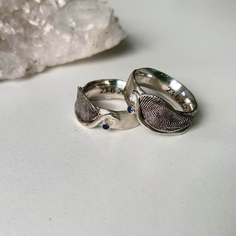 Omdat elke ring anders aanvoelt, stuur ik na de bestelling en betaling de basisring nog zonder de vingerafdruk en edelsteen naar je op. Je kunt dan op verschillende momenten van de dag voelen hoe de ring draagt. Dit is zonder extra kosten.